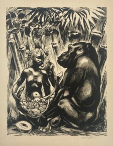 Déjeuner d'été 1957. 60° de la série des menus... 22 juin 1957. A la rôtisserie de Gargantua, Senlis. Eau-forte de Mademoiselle Louise Ibels. (N°1).
