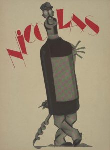 - Kiosque à journaux publicitaire pour Nicolas à la Madeleine. Carte de vœux. Encart paru dans l’Illustration 1931. Double feuillet papier fort, feuillet intérieur pour les vœux.