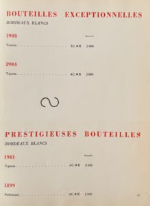 - 1963 Listes des Grands Vins. Aquarelles de B. Buffet. 32 pp., 2 ff., couvertures et 6 aquarelles de Bernard Buffet reproduites en couleurs. Joint liste "Indépendamment de la présente .."