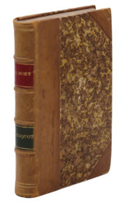 (Relié à la suite) : FIEVET (Victor). Madame veuve Clicquot (née Ponsardin). Son histoire et celle de sa famille. Avec 3 portraits, une lithographie et 2 autographes. Paris, Dentu, 1865. 2 ouvrages reliés en un volume in-16, demi-veau fauve à coins, dos orné de filets dorés et de roulettes dorées sur les nerfs, tranches peignées (Reliure de l'époque).Notices biographiques par Victor Fiévet qui était également imprimeur-typographe à Épernay. Avec le portrait de Jean Moët-Romont et un fac-similé de lettre pour la première et, le portrait de la veuve Cliquot, des comtes de Chevigné et de Mortemart, une vue du château de Boursault et deux fac-similés de lettres pour la seconde.