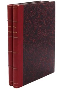Paris, Marchant, s.d. [1828-1839]. 2 volumes grand in-8, demi-chagrin rouge, dos orné de filets perlés dorés et à froid, tranches mouchetées, couverture (Reliure de l'époque).Recueil factice des treize principales pièces d'Alexandre Dumas publiées par le Magasin théâtral réunies en deux volumes.