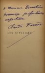 FARRÈRE (Claude). Les Civilisés. Paris, Librairie Ollendorff, 1906. In-12, demi-maroquin brun avec coins, couverture et dos (Dupré). Édition originale. Exemplaire ordinaire, enrichi d'un envoi autographe signé de l'auteur et d'une l.as. de Pierre Louÿs. Dos légèrement passé.