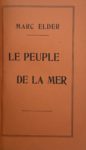 ELDER (Marc). Le Peuple de la mer. Paris, G. Oudin, 1914. In-12, demi-chagrin bleu à bandes, plats ornés de filets bleus et blancs à froid passant par le dos, dos lisse orné, tête dorée, couverture et dos (Devauchelle). Exemplaire sur japon non justifié, enrichi de 5 lettres autographes signées de l'auteur adressées au romancier Léon Hennique. Dos légèrement insolé.