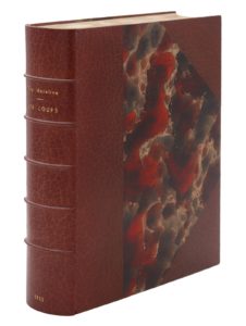 PEYRÉ (Joseph). Sang et lumières. Paris, Grasset, 1935. In-12, demi-maroquin rouge, plats recouverts de papier imprimé, dos lisse, tête dorée, non rogné, couverture et dos (Devauchelle). Édition originale. Un des 15 exemplaires sur vélin d'Arches, deuxième papier.