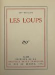 MAZELINE (Guy). Les Loups. Paris, Gallimard, 1932. Petit in-4, demi-maroquin brun avec coins, tête dorée, non rogné, couverture et dos (Devauchelle). Édition originale du Prix Goncourt 1932, remporté contre le Voyage au bout de la nuit à 6 voix contre 3 pour Céline. Un des 109 exemplaires de tête réimposés sur vergé, destinés aux bibliophiles de la Nouvelle Revue Française, imprimé pour Monsieur Marcel Réveillon d'Apreval.
