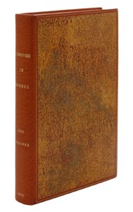 CARRIÈRE (Jean). L'Épervier de Maheux. Paris, Jean-Jacques Pauvert, 1972. In-8, demi-maroquin lavallière, plats recouverts de papier peint, dos lisse, tête dorée, couverture et dos (Devauchelle). Édition originale. Un des 50 exemplaires sur vélin pur fil, seul grand papier, enrichi d'un envoi autographe signé de l'auteur.