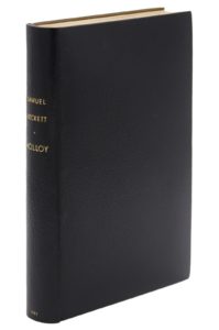 Paris, Minuit, 1951. In-12, maroquin noir, dos lisse, doublure de box olive, gardes de soie crème, tranches dorées sur témoins, couverture et dos, étui (M. de Bellefroid).Édition originale du premier volet de la trilogie romanesque de Beckett.