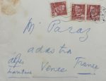 -Lettre adressée du Danemark à Albert Paraz avec une enveloppe. "Je possède la pierre philosophale grâce à elle repris 7 ans".