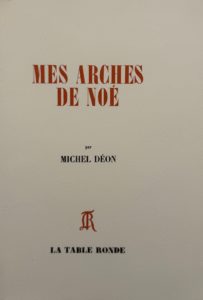 Mes Arches de Noé. Paris, La Table ronde, 1978. In-8, broché. Un des 50 exemplaires sur vélin d'Arches, deuxième papier. Plis au dos.