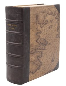 Paris, La Maison des Amis des Livres, Adrienne Monnier, 1929. Grand in-8 carré, demi-maroquin brun avec coins, plats recouverts de papier imprimé, non rogné, couverture et dos (Reliure de l'époque).Édition originale française, traduite par Auguste Morel et Stuart Gilbert et entièrement revue par Valery Larbaud et James Joyce lui-même. Le texte anglais avait été édité à Paris par Sylvia Beach en 1922.