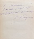 On joint : KOUPRINE (Alexandre). Sulamite. Paris, Monde nouveau, 1922. In-12, broché. Édition originale française, traduite du russe par Marc Semenoff et S. Mandel et préfacée par Camille Mauclair. Un des 350 exemplaires sur bulky vergé, complet du catalogue de l'éditeur et du prière d'insérer. Envoi autographe signé de l'auteur à Marcel Martinet (1887-1944), militant socialiste et écrivain prolétarien.