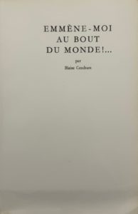 Emmène-moi au bout du monde !... Paris, Denoël, 1956. In-8, broché, non rogné. Un des 20 exemplaires sur hollande tirés pour Henri Lefèvre. Exemplaire à toutes marges.