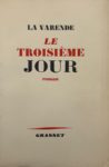 Le Troisième jour. Paris, Grasset, 1947. In-12, broché, non rogné. Édition originale. Un des 250 exemplaires sur vélin Renage réservés aux sélections Larnage. Dos légèrement passé, plis et petite déchirure à la couverture.