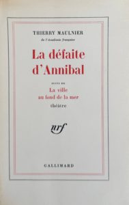 MAULNIER (Thierry). La Défaite d'Annibal suivi de La ville au fond de la mer. Paris, Gallimard, 1968. In-12, broché, couverture rempliée. Édition originale. Un des 65 exemplaires sur vélin pur fil, seul grand papier.