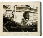 Album cartonato con 506 fotografie in b/n originali dell'epoca relative al Silver Jubilee of George V. Ottime condizioni. Copyright della famosa Sport & General Press Agency Ltd. di Londra. Fotografie presenti nelle collezioni reali inglesi. Dimensioni foto: 240 x 185 mm. (1) Storico reportage fotografico relativo ai festeggiamenti inglesi del 1935 per il giubileo di King George V. Sono presenti anche molte spettacolari immagini delle manovre aeronavali e di cavalleria tenutesi per l'occasione nelle acque dello Spithead (Solent, Portsmouth), nella storica base aerea di Mildenhall (Suffolk) e ad Aldershot (Hampshire). Le fotografie dei festeggiamenti londinesi ritraggono: il re George V con la regina Mary di Teck (Queen Mary) in carrozza, in corteo, davanti a Buckingham Palace (tra ali di folla), nella cattedrale di St. Paul (in vari scatti) e nella Guildhall; il re in uniforme da comandante delle Royal Guards durante il Trooping the Colour; i duchi di York (il futuro re George VI con la moglie Elizabeth Bowes-Lyon e le figlie bambine Elisabeth - futura regina - e Margareth); i duchi di Kent, Edward (futuro re, che abdicherà) e Wallis Simson; i reali di Norvegia; tutta la famiglia reale inglese al balcone, con Elisabeth (9 anni) in primo piano; le piccole Elisabeth e Margareth al party; principi indiani e nepalesi; alcuni Maharajah, ecc. Un artistico scatto dall'alto ritrae le Royal Guards e le loro ombre in incredibile allineamento. Le fotografie delle manovre aeronavali ritraggono: il re che sale sullo yacht reale HMY Victoria and Albert; il re e i tre figli (somigliantissimi) a bordo dello yacht; il lancio con catapulta di un idrovolante biplano; navi da battaglia con gran pavese; fuochi d'artificio notturni dalle navi; cannoneggiamenti a salve; luci antiaeree notturne dalle navi (searchlights); flotta sorvolata da biplani; lo yacht reale in mezzo alla flotta (foto aerea); l'intera flotta schierata nello Spithead (foto aerea); il re che saluta i biplani dalla R.A.F. in volo a Mildenhall; l'intera Aerial Armada schierata (2 foto aeree); bombardieri biplani in volo; il re che visita un bombardiere leggero Hawker Hind. L'album termina con le immagini della rivista militare tenutasi ad Aldershot, tra le quali spicca una grande panoramica formata da 4 foto collegate insieme.