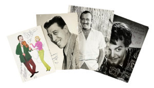 Manoscritti a inchiostro nero e blu. Alcune fotografie con brevi strappi. Alcuni timbri di fotografi al verso: Photo Sam Levin, A. Tassi, Foto Studio Saglimbene, Morandotti Agenzia Fotogiornalistica, Dial Studio di Fotografia ecc. Dimensioni varie. (27) Tra gli artisti: David Niven, Fernandel, Tito Gobbi, Brad Harris, Francesco Cavicchi, Alberto Sorrentino, Renato Rascel, Edwige Feuillere, Mario Riva, Attilio D'Orazi, Paolo Carlini, Rita Pavone, Macario ecc.