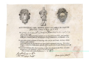 1 Monte del Monte de' Paschi di Siena. Datato 4 settembre 1651.
