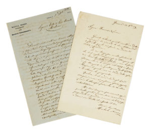 Novaro Michele, Due lettere autografe firmate. Datate 1859 e 1862.