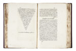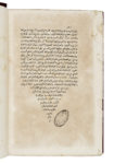 Due volumi In-4° grande (mm 257x175) cartacei, costituiti di 967 carte complessive, dalle singole pagine segnate con numerazione araba progressiva e coerenza testuale confermata dalla regolare apposizione dei reclamantes tra le carte. Il vol. I contiene i libri 1 e 2 su 497 carte [1+494+2] e il vol. II rilega i libri 3 e 4 su 470carte [1+468+1], con spazio scritto di mm 195x100 ca. e testo arabo in classico stile naskh a stampa tipografica in inchiostro nero distribuito su 29 righi a facciata; opera in quattro libri suddivisa in due volumi rilegati (Vol. 1: libri 1-2; Vol. 2: libri 3-4), il secondo dei quali, eccezionalmente, intonso e in barbe. Ciascuno dei quattro libri è introdotto da un frontespizio in tutto identico a quello di apertura; numerose carte del primo volume presentano rifilatura minima, il più delle volte ai margini inferiori. Al verso della carta finale spicca l'alone, molto sbiadito, di un timbro ovoidale con legenda in arabo oggi del tutto illeggibile, assai probabilmente coevo all'età di stampa. Le due legature in cartone telato, identiche per entrambi i volumi a eccezione della placchetta centrale apposta al dorso a identificare i volumi stessi, appaiono coeve o di poco posteriori e verosimilmente di origine francese, come suggerirebbe il giglio stilizzato che trova posto al decoro centrale dei piatti. Le condizioni di conservazione di questo rarissimo libro sono pressoché perfette: da rilevare soltanto il forte ingiallimento di alcune carte, diffuse tracce di umidità e tenui macchioline sparse, tutto a semplice effetto dell'usura del tempo, senza pregiudizio dell'integrità materiale né di quella testuale. (2) Seconda edizione, collazionata ed emendata a cura dello Shaykh Muhammad Qutta al-'Adawi. Questa introvabile edizione delle "Mille e Una Notte" a stampa (Kitab Alf Layla wa Layla) si presenta come versione "riveduta e corretta" (al frontespizio leggiamo infatti che lo studioso Muhammad Qutta al-'Adawi avrebbe operato "muqabala wa tashih", ossia "collazione ed emendamento") del testo dell'editio princeps in arabo approntata presso la stamperia di Bulaq nell'anno islamico 1251 (AD 1835), assai rara e di inestimabile valore. Sappiamo che lo Shaykh al-'Adawi operò al fine di correggere frequenti imprecisioni o errori e nella metrica delle numerose citazioni poetiche classiche, ma forse più ancora al fine di esercitare un confronto selettivo tra i racconti che compongono questa celeberrima raccolta di novelle arabe, così da rendere questa seconda edizione a un tempo filologicamente più rigorosa della prima e maggiormente adatta alle esigenze delle élite urbane arabe (su quest'ultimo punto, si veda al-Musawi, Muhsin J. (Columbia University), "The 'Mansion' and the 'Rubbish Mounds': 'The Thousand and One Nights' in popular Arabic tradition", in: Journal of Arabic Literature (Brill), Vol. 35, N° 3 (2004), p. 351). L'eccezionale rarità della presente edizione, il suo stretto rapporto con la prestigiosa prima edizione del 1251/1835 a cura di 'Abd al-Rahman al-Sifti al-Sharqawi e più di ogni altra cosa le perfette condizioni di conservazione dei due volumi rendono questo libro un esemplare di altissimo valore complessivo, oltre che di intrigante interesse culturale e filologico per ciò che concerne la complicata vicenda testuale ed editoriale dell'indiscusso capolavoro della narrativa araba classica.