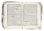 Volume a stampa tipografica su carta vergellata spessa composto di 111 carte totali misuranti mm 310x210, [110+1] con specchio di scrittura di mm 235x150; testo arabo a caratteri di stile naskh a stampa in inchiostro nero, distribuito su 27 righi a facciata, con titolature enfatizzate da modulo più ampio e in grafia thuluth. Citazioni scritturali e loro passaggi identificativi rubricati sistematicamente, in inchiostro rosso chiaro. Singole facciate numerate in fase tipografica (da 1 a 226). Alla p. 144 registriamo un secondo colophon, mentre alla p. 161 leggiamo il primo "Kanun" (al-awwal), seguito dal secondo (al-thani) a p. 182. Dal punto di vista decorativo segnaliamo: alle pgg. 95 e 114 due colophones con immagini, la prima delle quali impressa "ex antiqua gemma hujus magnitudinis"; altra icona a pg. 119, "terminati le Lettere e i Vangeli". Splendida legatura, purtroppo danneggiata al margine inferiore sinistro del piatto anteriore (mancanza angolare e sfilacciatura) e ammaccata in più punti, con decorazione centrale a croce greca composta da elementi "ad arabesco" e bella cornice continua con motivi vegetali, oltre a decori angolari interni.Condizioni di conservazione testuali generalmente buone, ad eccezione di uno strappo a margine di c. 14 (pgg. 27/28), macchie marginali, alle pgg. 138 e 139, e, passim, qualche ingiallimento alle carte. (1) Seconda edizione di questo raro e interessante pentecostario cristiano-orientale in uso della chiesa maronita, ramo autonomo della Chiesa cattolica orientale, stampato per la prima volta nel 1765. Importante testimonianza della vitalità della cultura cristiana del Vicino Oriente, oggi minacciata da condizioni storico-politiche avverse.