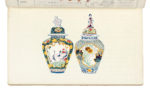 2 volumi in-4°. Coppia di volumi a stampa xilografica (vol. I di pgg. 135 [1+134]; vol. II di pgg. 164) eseguiti secondo il metodo mokuhanga, misuranti al foglio mm. 225x150, con specchio di scrittura di mm. 195x120; testo giapponese distribuito su di una media di 16 colonne di testo a facciata, stampato con inchiostro nero. Il frontespizio del vol. I è a colori ed espone i dati editoriali; presente un timbro di possesso. Illustrazioni sia in bianconero che a colori si ritrovano su ambedue i volumi: più precisamente, al vol. I, pg. 31, è riprodotto un reperto archeologico, presumibilmente dell'età della pietra; a pag. 106 spicca la pregiata illustrazione a colori di un vaso di ceramica per conservare le foglie da tè, cotto con una tecnica imitante la smaltatura cinese tipica del periodo Jian'an. Al vol. II, pg.20, si illustra la tecnica per l'ottenimento della particolare tonalità di blu-grigio e di azzurro chiaro utilizzate in ceramica, e a pg. 58 è illustrato un vaso cinese che, passato in mani olandesi, si trova oggi conservato al British Museum di Londra. Rilegato con copertina giapponese watoji. Entrambi i volumi sono assai ben conservati. Alcune sottolineature a penna rossa e qualche appunto a matita, verosimilmente di un precedente proprietario. (2) Nella prefazione l'Autore dichiara che quest'opera va considerata come un trattato generale sulla ceramica giapponese, per poi passare a esaminare la cronologia degli elementi utili a comprendere l'evoluzione dell'arte ceramica, ad esempio elucidando origini e funzionamento delle fornaci nelle diverse provincie nipponiche, registrando le caratteristiche dei prodotti, e descrivendo il percorso storico della ceramica partire dalle origini cinesi e coreane fino alle dinamiche del suo sviluppo dopo essere state introdotte in Giappone.