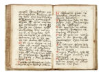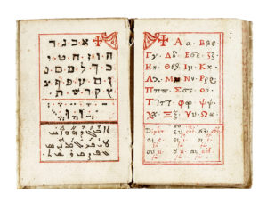Codice manoscritto per lo più in lingua greca (varietà koinetico-ecclesiastica) su carta vergellata spessa e bianca di mm 100x65, composto di 58 carte complessive (114 facciate: da 1v. a 58r.), con dimensioni dello spazio scritto corrispondenti a mm 75x45 e numero di righi variabile tra i 18 e i 23 lungo il manoscritto; testo greco vergato all'inchiostro nero in una grafia moderna anticheggiante con abbreviazioni e legature limitate, capilettera e titolature rubricati, internamente strutturato come segue: c.1v.: alfabeti ebraico e siriaco (più simile alla forma orientale "madnhaya") a confronto; 2r.: alfabeto greco con regole di pronuncia nei dettagli; 3 r.-v.: Lista dei valori numerici delle lettere greche e Indice parziale dei Salmi di Davide in latino; 4r.: Hymnos Angelikòs; 5r. - 24v.: Selezione di Salmi in greco; 25r. - 32v.: Antìphona tes Theotòkou Exellenisthénta; 33r. - 36r.: Litanie (Litanèiai), con la "Metamorfosi di Cristo", preci mariane e le Litanie dei Santi 37r. - 57v.: Altri Salmi greci; 58r.: Colophon, con immagine (impressione di timbro quadrato) del santo martire Rocco di Montpellier. Semplice legatura muta in pergamena piena giallastra. Condizioni di conservazione eccellenti: due cancellature di testo, probabilmente di mano dell'autore stesso; qualche macchia e altri minimi segni del tempo. (1) Questo libello dall'apparenza devozionale, redatto (forse più che copiato) a mano in lingua greca, rappresenta verosimilmente l'opera dell'ozio privato di un erudito bibliofilo e studioso di idiomi del Vicino Oriente di origine italiana o francese vissuto nella prima metà del XIX secolo, interessante operazione a metà fra il divertissement intellettuale e la compilazione di fonti filologiche della fede cristiana, in particolare cattolica.