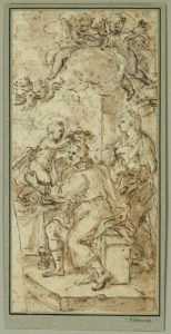 École de Francesco SOLIMENA L'enfant Jésus couronnant Saint Joseph Plume et encre brune, lavis brun sur traits de crayon noir. (Contrecollé, rousseurs)