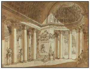 BARBIERI Giuseppe (1746-1806) Intérieur d'un temple avec des tombeaux avec inscriptions ‘TE.D.LIBER' et ‘ATIST/RE' Dessin à la craie noire, plume et encre brune, lavis brun. 43 x 57 cm PROVENANCE: Vente Christie's Paris, le...