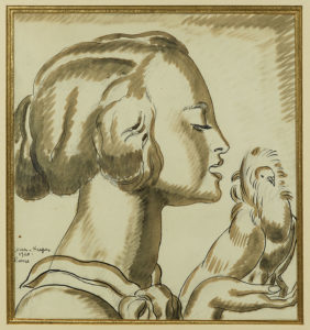 DUPAS Jean (1882-1964) Jeune femme à la colombe Dessin à l'encre de Chine, fusain et aquarelle beige. Signé en bas à gauche «Jean Dupas» 1920 Roma. 19 x 18 cm