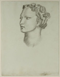 DUPAS Jean (1882-1964) Tête de femme, étude pour l'exposition de 1937 Esquisse préparatoire au fusain, signée en bas à droite du monogramme JD, titrée expostion de 1937 et datée de Février 37. 46,5 x 36 cm