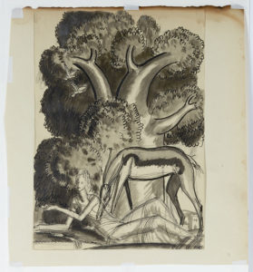 DUPAS Jean (1882-1964) Jeune femme allongée à l'antilope Dessin à l'encre et lavis, monogrammé en bas à droite. 32,5 x 30,5 cm