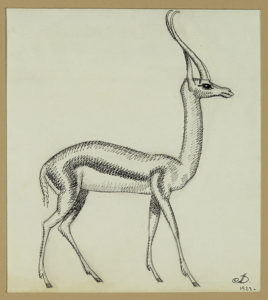 DUPAS Jean (1882-1964) L'antilope Dessin à l'encre de Chine et fusain, monogrammé en bas à droite et daté 1923. 22 x 19,5 cm