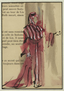 BERARD Christian (1902-1949) Une fille Belle aquarelle et gouache représentant les personnages de la pièce Sodome et Gomorrhe dont Christian BERARD fut chargé de la réalisation du décor. 14 x 9 cm