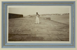 LARTIGUE Jacques-Henri (1894-1986) Renée sur la digue Tirage argentique d'époque. 8,5 x 14 cm (À vue, sous encadrement)