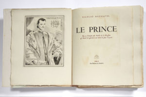 MACHIAVEL Nicolas Le Prince mis en français, ed. du Mouf lons Paris En feuilles sous portefeuilles, Éditions tirée à 116 ex. 1 des 14 exemplaires sur chiffon d'Auvergne avec suite sur Auvergne, un dessin original signé et un cuivre....