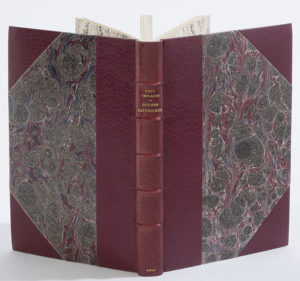 à coins, dos à 5 nerfs, titre doré, contreplats et gardes de papier peigné. Tête dorée. Couvertures jaunes imprimées en noir (à la date de 1867) et dos conservés. Étui bordé. Édition originale. Exemplaire enrichi d'un envoi autographe signé à l'encre sur le premier feuillet blanc : «A monsieur Gill, hommage de l'auteur, P. Verlaine» Précieux exemplaire du caricaturiste André Gill.