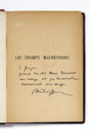 BRETON André - SOUPAULT Philippe Les Champs Magnétiques, Paris, Au Sans Pareil, 1929. Reliure de Georges HUGNET (?). Exemplaire de chagrin noir avec aplat de chagrin rouge, dos lisse, titre doré. Envoi signé : «à Georges [HUGNET],...