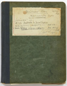 BAC Ferdinand (1859-1952). MANUSCRIT autographe signé «Ferdinand Bac», Manuscrits divers, 1929-1930 ; cahier petit in-4 (22 x 17 cm) de 122 ff. chiffrés, couv. cartonnée vert foncé avec étiquette de titre autographe, dos...