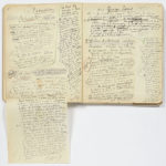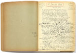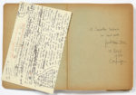 toilé. Cahier de brouillons d'articles et souvenirs, avec de nombreuses ratures, corrections et additions. Le cahier est écrit au recto des feuillets, avec de nombreux ajouts sur la page en regard, parfois par des feuillets collés. Il est signé à plusieurs endroits. Il porte cette dédicace en tête : «A Caroline Octavie son Cent-garde Ferdinand Bac 18 août 1932 Compiègne». Une table à la fin du cahier en recense les 58 entrées. L'étiquette de titre, sur le plat sup., indique qu'il s'agit ici d'articles pour Comoedia, de la suite des «Intimités du Second Empire», de «Notes sur Vienne», et de la suite de «Vienne à l'époque de Napoléon». Le cahier a été commencé le 9 décembre 1929, à Menton, aux Colombières. Bac évoque de nombreuses personnalités du Second Empire : Napoléon III, l'Impératrice Eugénie, le Dr Véron, les Goncourt, Ambroise Thomas, Lamartine, Taine, Offenbach, Alexandre Dumas, Delacroix, Renan, la Patti, l'abbé Coquereau, Thérésa, Pauline de Metternich, Mérimée, la princesse Mathilde, George Sand, Sainte-Beuve, Courbet, Arsène Houssaye, Auber, les bals, les Tuileries, les modes, les coulisses de l'Opéra, la guerre de 1870., les Bonaparte en exil... La fin du cahier est consacrée à son voyage à Vienne, et à la mort de François-Joseph. On a joint un manuscrit autographe signé, Le prolétariat des Elus (2 p. in-4).