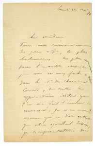DORÉ Gustave (1832-1883). L.A.S. «GDoré», 22 mai 1876, à Alfred GRÉVIN ; 3 pages in-8. Il remercie chaleureusement son «cher Maître» pour «l'aimable surprise que vous m'avez faite ce matin dans le n° du Charivari...