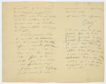 [un dessin humoristique dans ses Fantaisies parisiennes représentant deux jeunes gens visitant le Salon, l'un admirant L'Entrée de Jésus à Jérusalem de Doré, l'autre «artiste» voulant lui montrer sa peinture d'un gigot de mouton]. Certes, de toutes les appréciations écrites que l'on m'a fait l'honneur de consacrer, je n'en connais aucune qui en dise autant que votre spirituel dessin, que la représentation du monstre, de l'ennemi, de l'homme au gigot de mouton, de l'ouvrier copiste dont la condition est de décrier sans cesse l'invention du pseudo-artiste, ennemi juré de l'art». Hier ses amis lui ont adressé dix fois ce numéro du Charivari en le félicitant : c'est dire «tout l'effet et la portée que l'on a trouvée à votre spirituelle page !»... Il espère le remercier bientôt de vive voix : «S'il vous arrivait de vous égarer sur les bords fleuris qu'arrose la Seine (quartier du Cours la Reine) je serais bien heureux de vous recevoir à mon atelier 3 rue Bayard et de vous montrer mon usine, entr'autres choses un grand tableau qui a au moins l'importance de celui qui est au Salon».