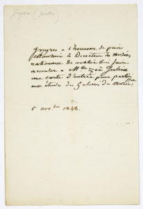 INGRES Jean-Dominique (1780-1867). L.A.S. (signée en tête à la 3e personne), 5 novembre 1848, au Directeur des Musée Nationaux [Philippe JEANRON] ; demi-page in-8. «Ingres a l'honneur de prier Monsieur le Directeur des Musées...