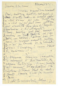 faire réentoiler des papiers historiques» en vue d'une exposition à «la Galerie de France dont la date, faute d'oeuvres, n'est pas encore fixée. Voilà le ministère BLUM : je sais que vos actions vont remonter ; c'est le seul qui puisse opérer (pour combien de temps ?) ce miracle. Profitons-en». Il évoque le collectionneur Pierre Maurs, l'éditeur Correa-Floury, et recommande l'ouvrage de KAHNWEILER sur Juan GRIS.