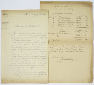 VIOLLET-LE-DUC Eugène (1814-1879). L.S. et P.A.S., Paris 31 juillet 1855, à un ministre ; 2 et 1 pages in-fol. Projet pour la Faculté de Clermont (Puy-de-Dôme). Il envoie une troisième étude pour le Palais des Facultés, avec un...