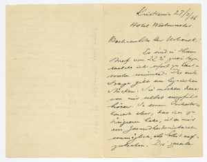 GRIEG Edvard (1843-1907). L.A.S. «Edvard Grieg», Kristiania 27 mars 1906, à M. URBANEK ; 3 pages in-8 ; en allemand. Il répond aux questions posées, et d'abord en ce qui concerne le souhait qu'il interprète ses Pièces lyriques....