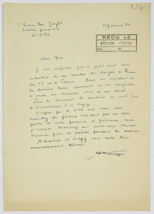 réception. Il se rendra «au Congrès de Rome du 1er au 6 février. Seul un accident de la dernière heure pourrait m'en empêcher à cause du mauvais état de ma santé. Pour le moment le médecin ne voit pas d'inconvénient à ce voyage»...