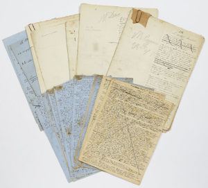 ABOUT Edmond (1828-1885). MANUSCRIT et notes autographes pour Rome contemporaine, [vers 1860] ; environ 60 pages in-8 et in-4, certaines à son chiffre, quelques feuilles contrecollées. Manuscrits, brouillons et notes avec ratures et corrections...
