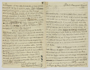 BARBEY D'AUREVILLY Jules (1808-1889). L.A.S. «Jules Barbey d'Aurevilly», Mardi soir 21 juin [1864 ?], à Hector de SAINT-MAUR ; 2 pages in-8 (liseré vert) à l'encre rouge. Belle lettre. «Le solitaire de la rue Rousselet, ce sombre...