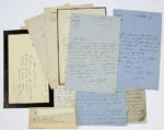 Giaour qui s'est tant ennuyé dans son capuchon, depuis que vous êtes parti, ira dîner chez vous, jeudi prochain. Si l'escarpolette qui vous balance de Livry à Puteaux et de Puteaux à Livry ne peut pas s'arrêter ce jour-là, pour me donner cette Pause de bonheur, mandez le moi et je repiquerai dans ma tristesse. Diable m'emporte si j'ai ri depuis que vous êtes là-bas ! Vous représentez toute la joie présente de mon esprit et de mon coeur. Quand je soulève mon verre, chez vous, il me semble que je soulève cette montagne qu'on a sur le coeur & qu'on appelle, je crois, la vie»... On joint 8 L.A.S. d'Edmond ABOUT à sa femme, et 18 L.A.S. adressées à Edmond About, notamment au sujet de son drame Gaëtana, par Juliette ADAM, Louis BULOZ (3), Th. CHAULOUX, Barthélemy DANGLAS, M. DESTUTT DE TRACY, Émile DURANDGRÉVILLE, Camille FERRI-PISANI, Adolphe GUÉROULT (2), Gabriel LUCAS DE MONTIGNY, Eugène MOREAU, T. VÉRON, etc. ; plus une L.S. de Maurice RICHARD, ministre des Beaux- Arts, et 2 télégrammes.
