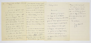BATAILLE Georges (1897-1962). 2 L.A.S. «Georges Bataille», Fontenay-le-Comte 1960-1961, à Joseph-Marie LO DUCA ; 4 pages in-8 chaque. [J.-M. Lo Duca dirige dès 1958 la collection «Bibliothèque internationale d'érotologie»,...